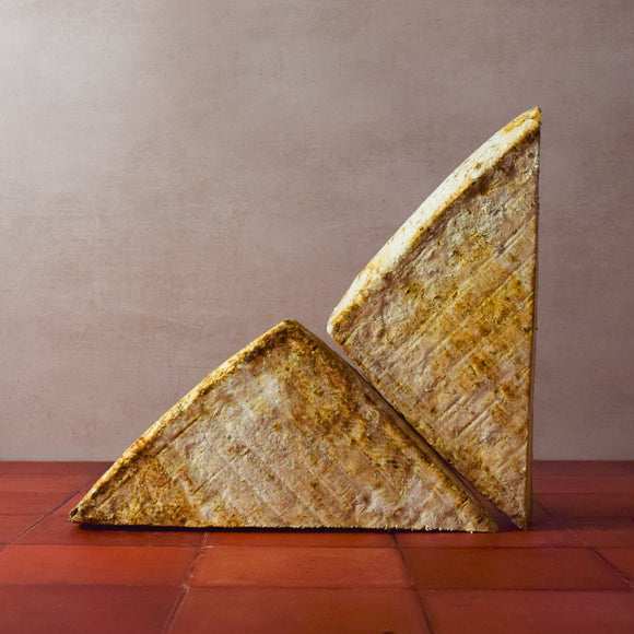 A super rare, ultra-special aged cheese! Appalachian is an incredible cheese in its own right, but this extra-aged batch is truly something none of us have tasted before. With the additional months in Meadow Creek's cave, Appalachian's smooth, toothsome paste becomes a little more dense, featuring notes of earth, bone broth and savory, salted caramel. The best part, though? This mature tomme is studded with those crunchy protein crystals every aged cheese lover searches for.